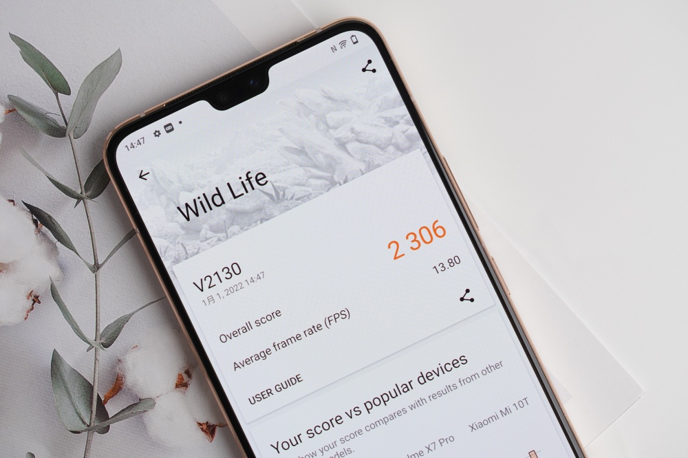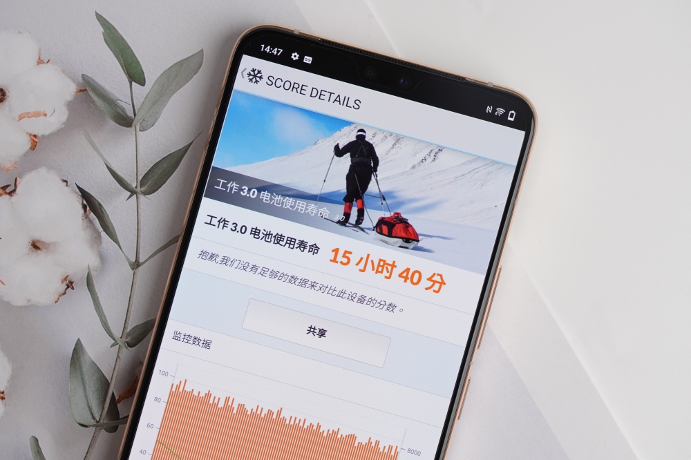 vivo V23 5G 在輕薄的機身設計下,放入了 4,200mAh 大電池,搭配上天璣 920 處理器的能耗控制以及 vivo 自己研發的 OS 功耗優化技術,續航力表現非常的好,透過 PCMark 工作 3.0 模擬一般使用情境,在螢幕亮度設定為 50%、連上 Wi-Fi 的條件下,電量從 100% 至 20% 為 15 小時 40 分鐘,若是開啟省電功能,或是使用深色模式,還可以延長續航表現。