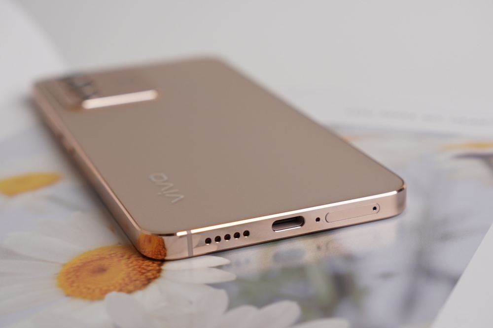 底部為揚聲器、Type-C 連接埠、SIM 卡槽。