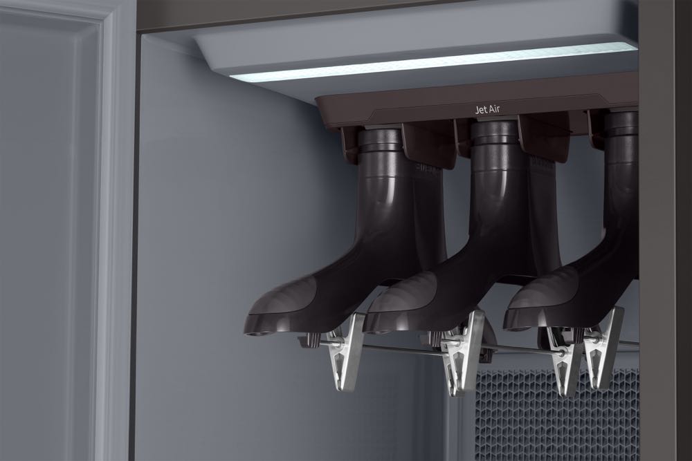 而「UV 紫外線殺菌」、「光觸媒除臭濾網」及「Jet Steam高溫蒸氣技術」,除了能深入衣料纖維消除異味粒子,更獲得 Intertek 與英國抗敏協會(BAF)認證,能消滅 99.9% 的細菌、病毒及過敏原,大幅提升全家人的健康品質照護。此外,為滿足多元的生活型態,AirDresser 電子衣櫥更能一機多用,消費者能為約 10 坪的室內空間進行除濕,輕鬆維持舒適清爽的居家空氣與濕度。