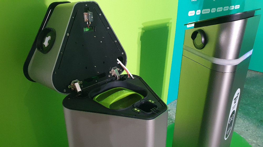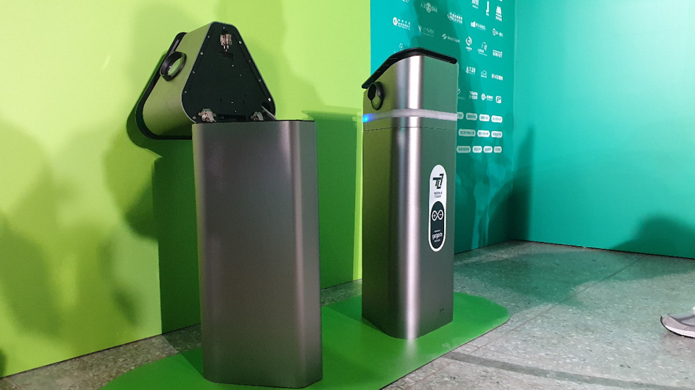▼ 現場也展示由 Gogoro 智慧電池供電的智慧停車柱。