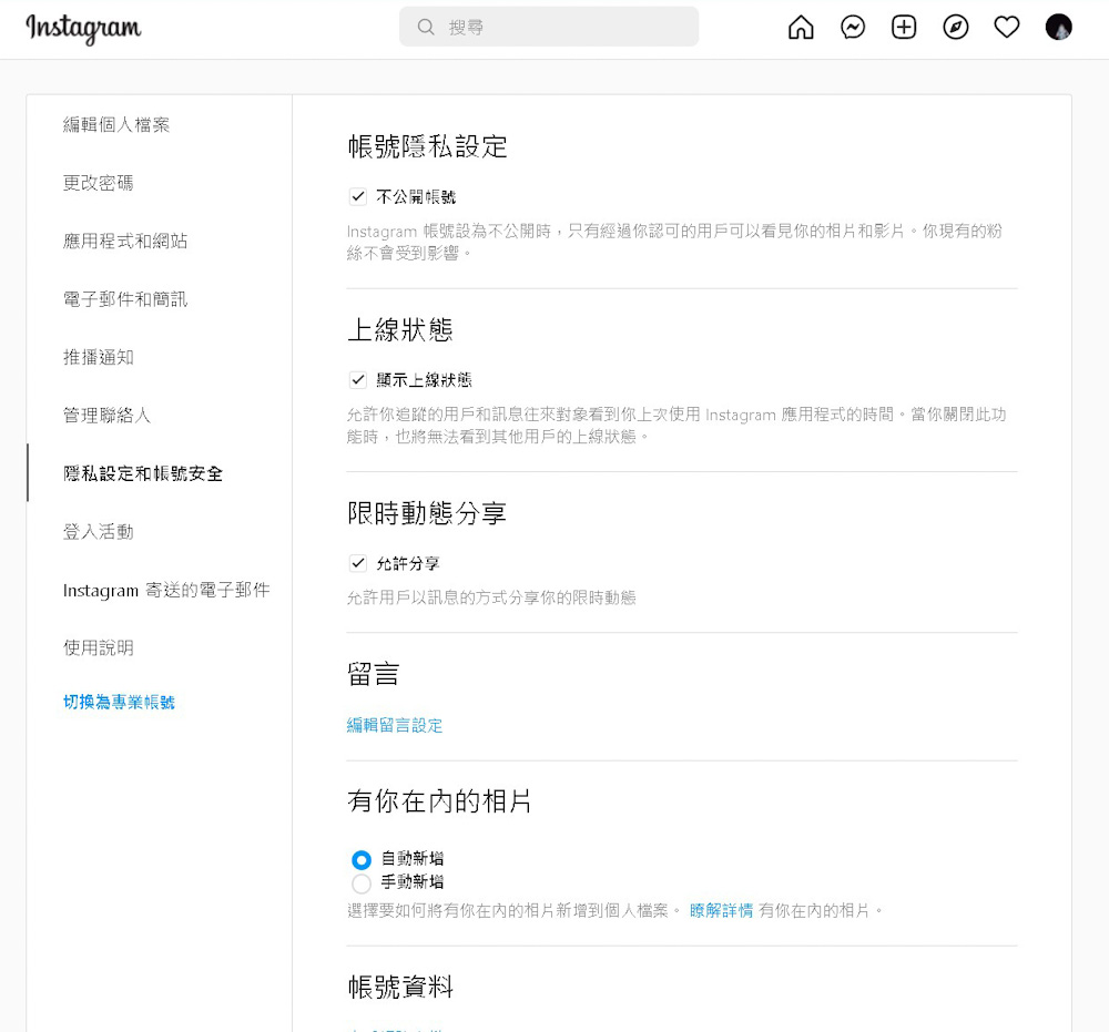除了隱藏線上狀態之外,我們也針對 IG「隱藏讚數」、「永久移除帳號」提供簡易的教學: