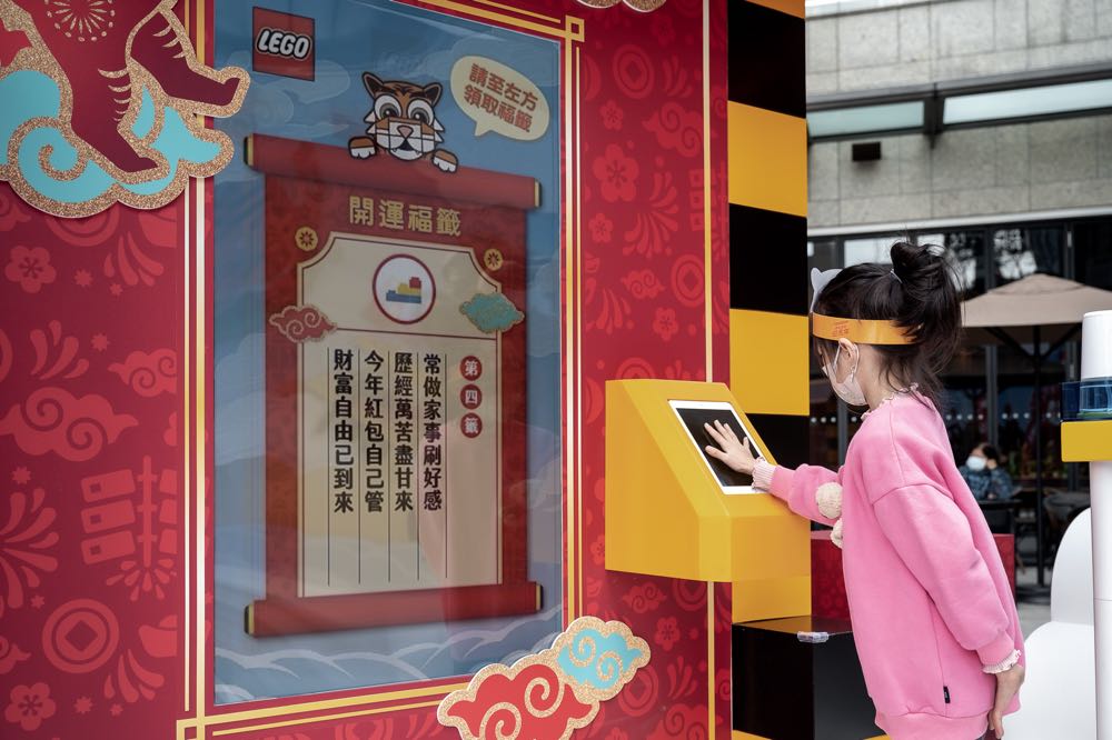 動現場提供消費者求取樂高籤詩一探新年運勢。同時設置福虎雲中城闖關賀新年及新年主題盒組中之「樂高財神爺」30 倍放大拍照打卡點,打造新年期間不容錯過的樂高地標,新年期間樂高同時準備年年引起消費者爭相收藏的「生肖限定積木組」、首度推出的「虎年紅包春聯組」,以及多項快閃店限定消費贈禮,與消費者一起虎虎生風迎新年。