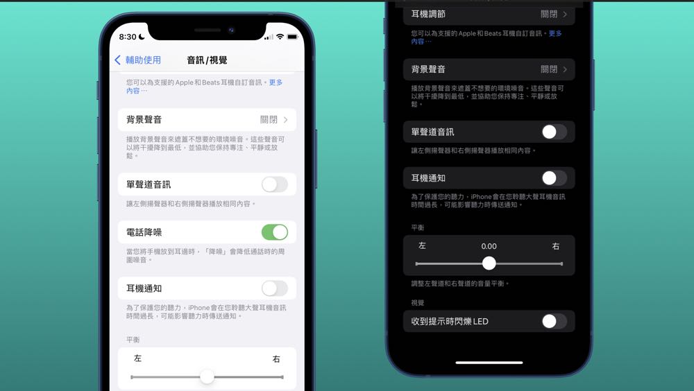 如果想要開啟 iPhone 的「電話降噪」,是從「設定」>>>「輔助使用」>>>「音訊/視覺」中開啟,當「電話降噪」功能開啟,日後只要偵測到用戶將手機放到耳朵旁邊時就會在通話時降低周圍的噪音。