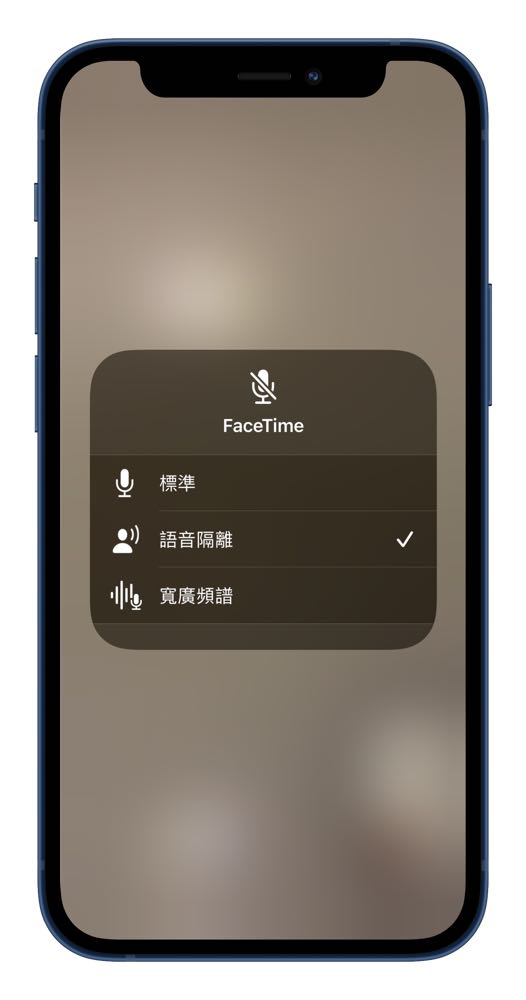 iPhone 13 系列用戶也不要擔心,雖然我們無法在設定中直接預設這個功能,但還是能夠在每通 FaceTime 中來使用「語音隔離」達到降低身邊噪音的效果。