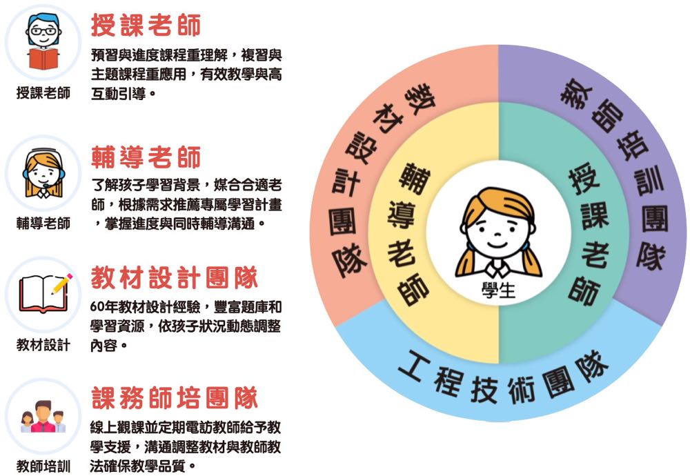 為解決普遍線上學習的問題,南一書局首創 OneClass 真人 Live 家教平臺,線上一對一真人家教系統具備因材施教的一對一客製化線上課程、真人線上真實互動教學模式、「授課X輔導」雙師制度,加上可讓家長隨時掌握學習狀況等特色,讓學生在變動的環境中達到最佳的學習效果。