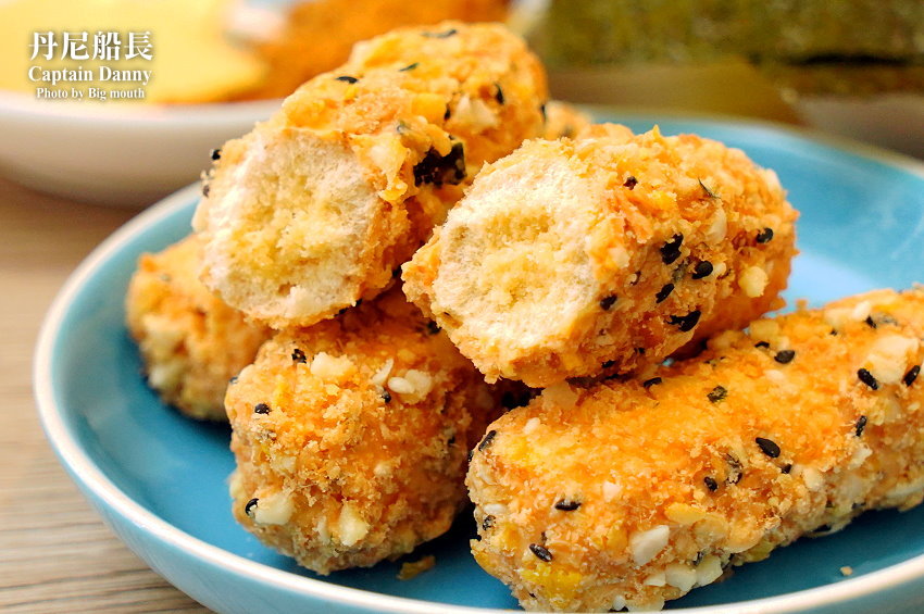 ▼一口咬下,不僅能吃到香、酥、鬆、脆的口感,濃郁油潤的金沙搭配迷人香鬆、香濃起司、酥脆杏仁等豐富口感,鹹甜交錯的味蕾在嘴裡輪流迸發開來,吃完也不會覺得乾口或卡喉,反而會讓人有種想一口接一口的魔力,拍完當下就不小心嗑了三根,真的是邪惡度爆表啊!
