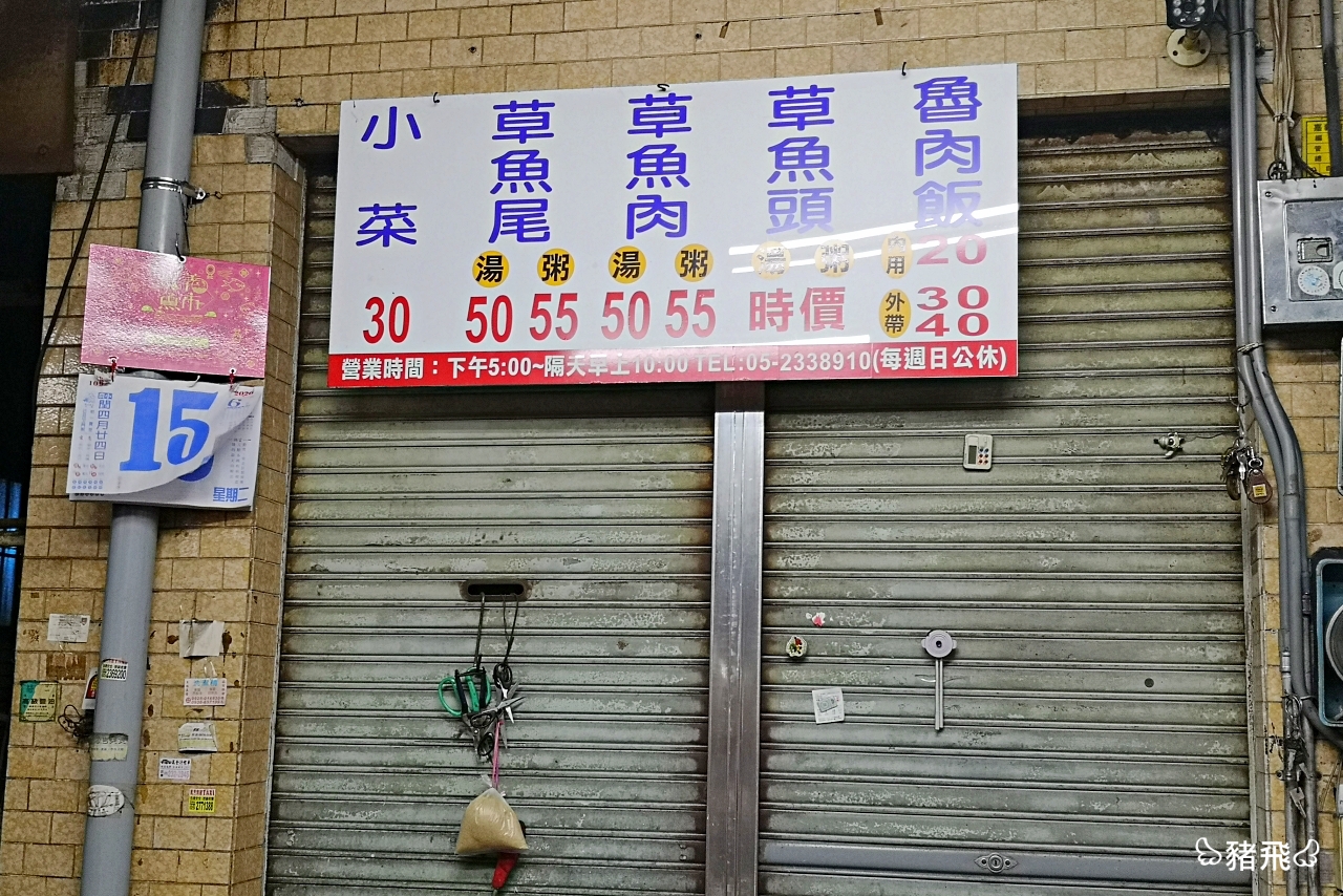 有一陣子常常在嘉義走跳,在地朋友推薦了不少他們從小吃到大的老店,其中這家在博愛路上的「正老牌草魚粥」可是天天排隊爆滿,撲空了幾次豬飛總算有機會一嚐美味。賣的餐點很簡單,以新鮮的草魚熬煮的草魚粥、草魚湯、需要碰運氣才能吃到的草魚頭湯,還有吃飽足的魯肉飯。自從漢斯先生帶我來吃過後,每次到嘉義我就會指定要先來喝草魚湯,可想而知它有多美味了!