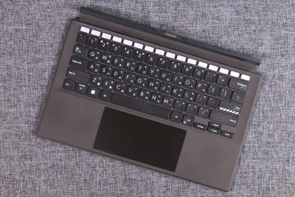 為了提供舒適的打字體驗,磁吸可拆式鍵盤特別採用與桌上型電腦鍵盤相同的按鍵間距和按鍵行程,按鍵間距為 19.05 公釐、按鍵行程為 1.4 公釐。此外,每個鍵帽上都有 0.2 公釐的曲面設計,可大幅提高打字時指尖的舒適度,營造出如桌上型電腦鍵盤、筆記型電腦鍵盤般的舒適手感。
