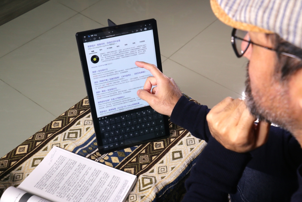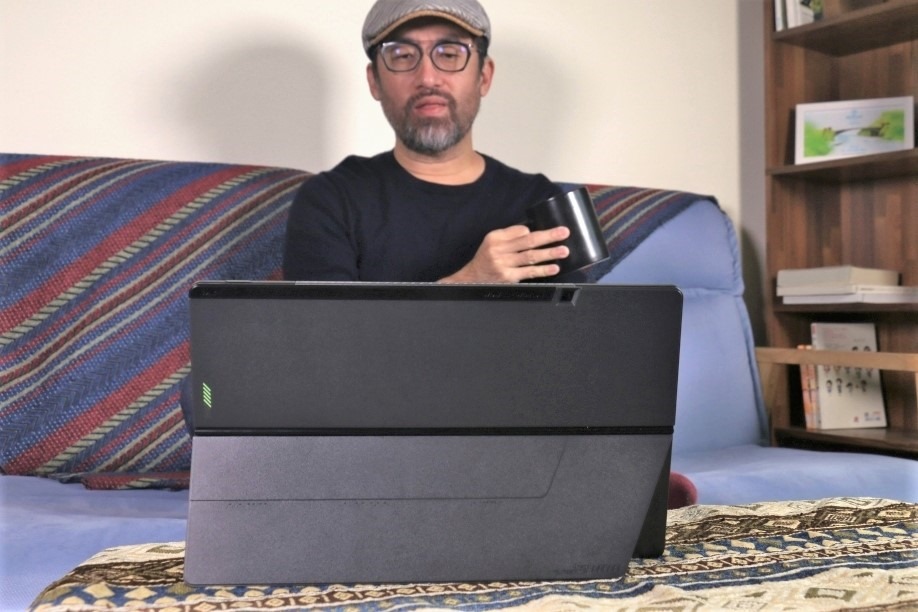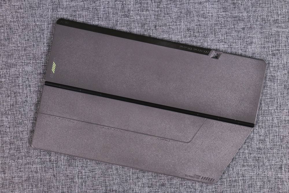 支架保護套採非對稱設計,右下角的斜邊設計正好可以讓 ASUS Vivobook 13 Slate OLED 輕易直立擺放,用來查資料、看 Paper 或是圖文較多的網頁格外方便。