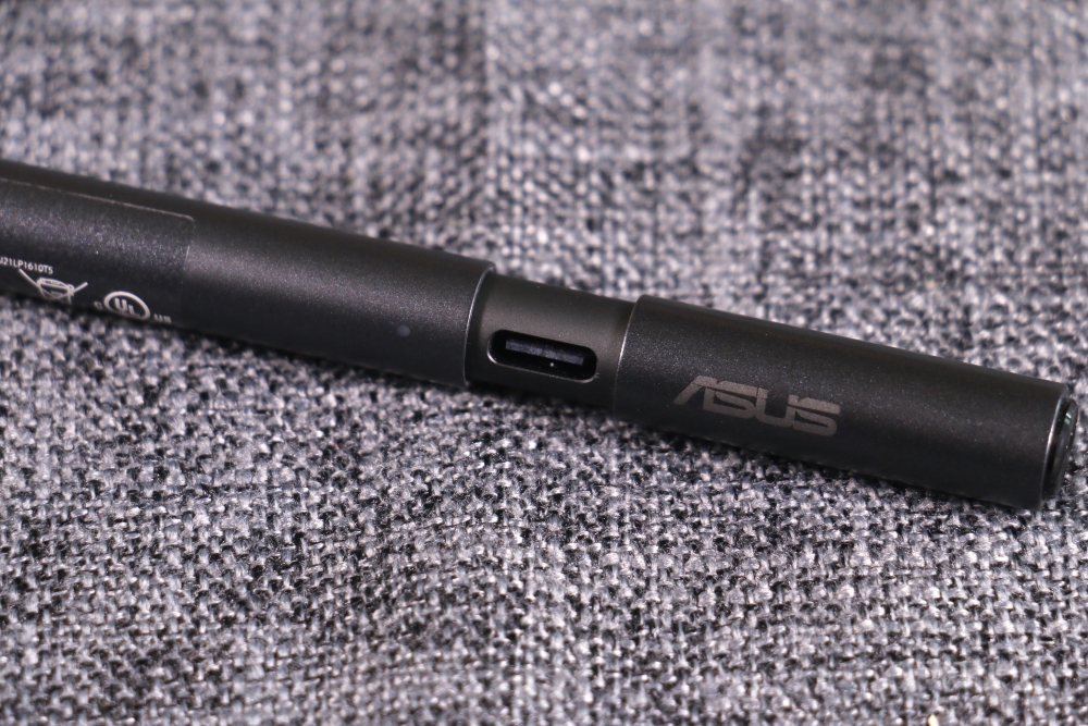 ASUS Pen 2.0 的 USB Type-C 連接埠隱藏在筆身中,需要拉開尾端才會露出,充滿電後可連續使用 140 小時以上,續航力非常持久。連接埠左側是 LED 指示燈,用來提示電量、藍牙配對狀態。另外,ASUS Pen 2.0 的尾端還具備一個功能按鈕,可自己定義該按鈕的功能,包括可擷取螢幕截圖、在簡報時跳至下一頁、啟動 Microsoft Whiteboard 以及快速啟動設定的應用程式…等。