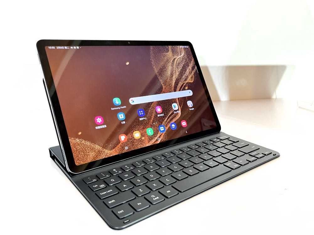Samsung Galaxy Tab S8 系列還有對應的鍵盤皮套,讓用戶不論是單純追劇、當桌機的第二螢幕還是根本自己化身為文書作業好幫手通通能自行搭配、輕鬆搞定!