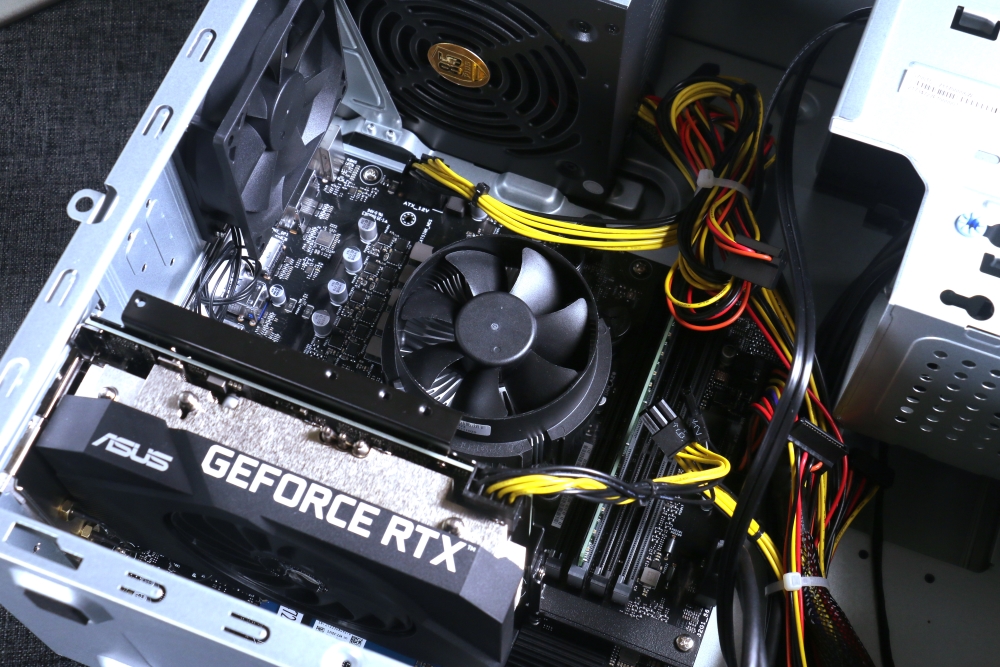 NVIDIA GeForce RTX 3060 獨立顯示卡設置在背板下方的擴充區中,提供一個 HDMI 及三個 Display Port 連接埠,可同時外接三台 4K UHD 顯示器,輕鬆執行多工任務,要一邊工作一邊盯股市也沒問題。而在獨立顯示卡下方的兩個金屬接點,是無線網路接收器的接點,只要接上盒裝內附贈的接收器,就能直接使用無線網路,最高支援 WiFi 6。