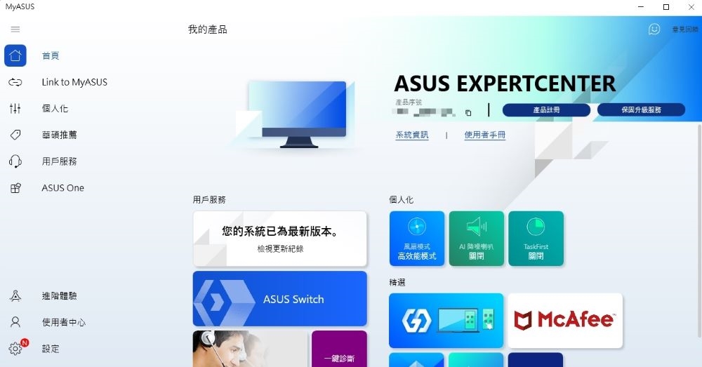 ASUS S700TC 桌上型電腦內建非常好用的 MyASUS 功能,這個功能除了可以檢視電腦的相關資訊外,還可以透過它來取得 ASUS 的支援服務,協助使用者維護系統、更新軟體、系統診斷…等,不只讓電腦保持最佳狀態,就算有狀況必須送回原廠維修,也能大幅減少維修來回溝通的時間。