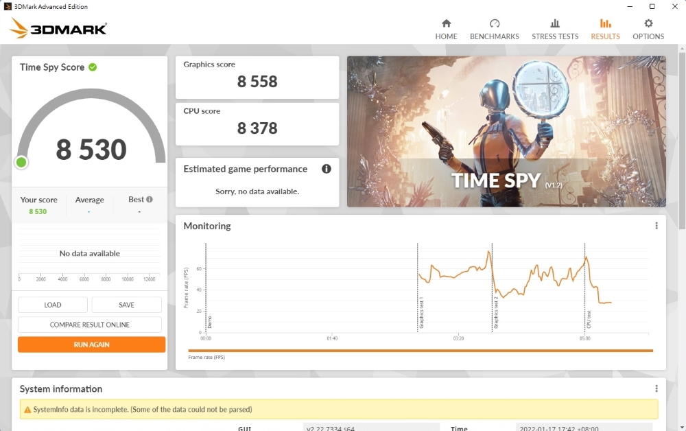 圖形運算方面就如前面所說,表現非常出色!經跑分軟體 3DMARK 的實測,這張 NVIDIA GeForce RTX 3060 測得 8,530 分的綜合分數,這樣的效能足以應付目前市場上的主流遊戲,即使用它來修圖、剪片、中度繪圖也相當夠用,滿足各種使用者的需求。