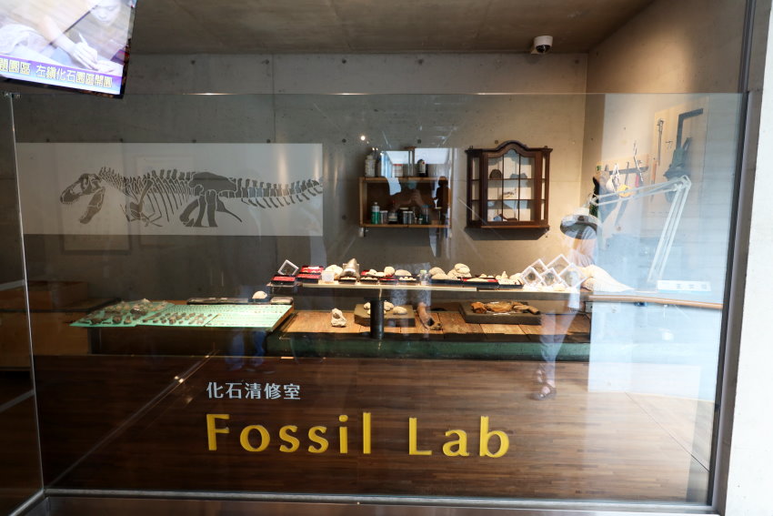 ▼化石清修室,週末下午會有化石協會的人員來清修,讓大家更能清楚了解到化石挖掘、清修、復原的過程!