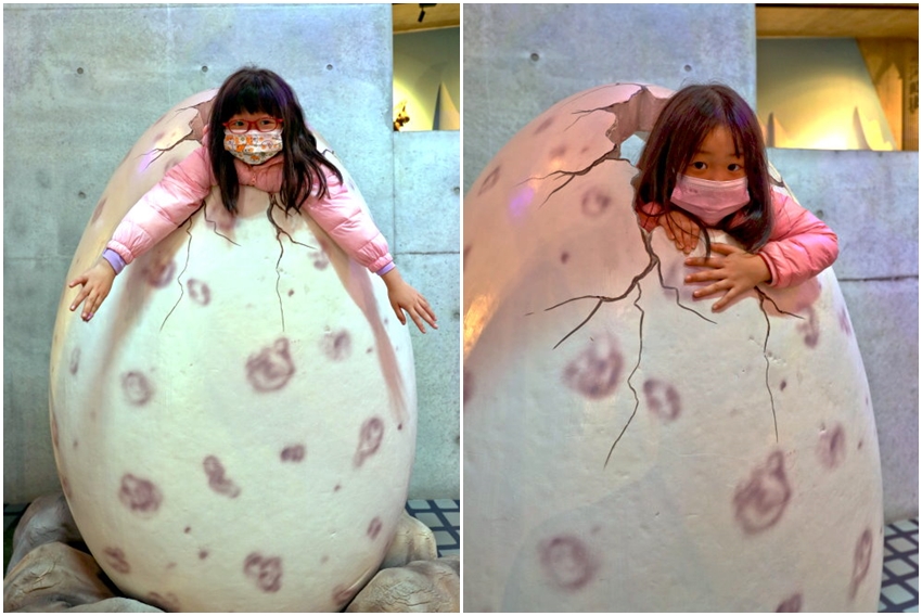 ▼一旁還有超逼真的恐龍蛋,可以讓小朋友躲在裡頭探出頭來偽裝成小恐龍拍照(笑)!