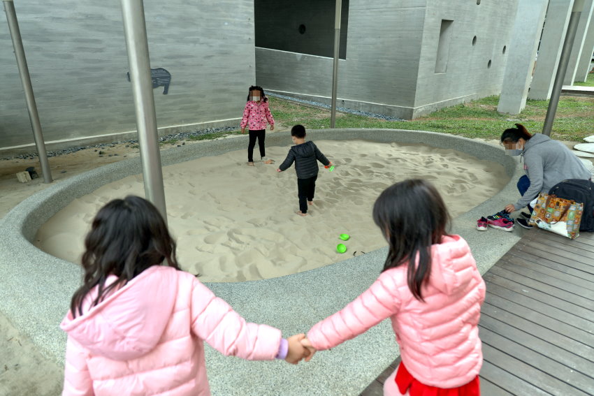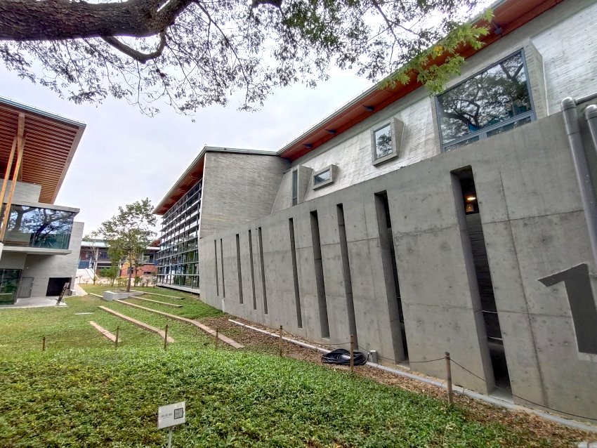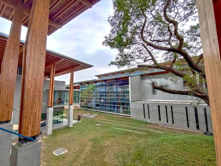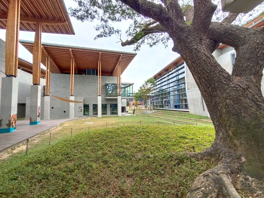 ▼戶外則是雨豆樹廣場,大家可以在這裡休憩、欣賞建築之美,這裡不僅是跟光榮國小一同打造出全國唯一「校館合一」的化石博物館,更是融合化石地層紋理、就地原建材及空間美學概念,也吸引不少朋友特地前來欣賞!
