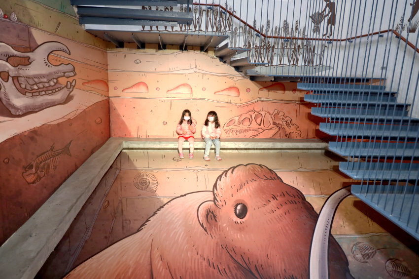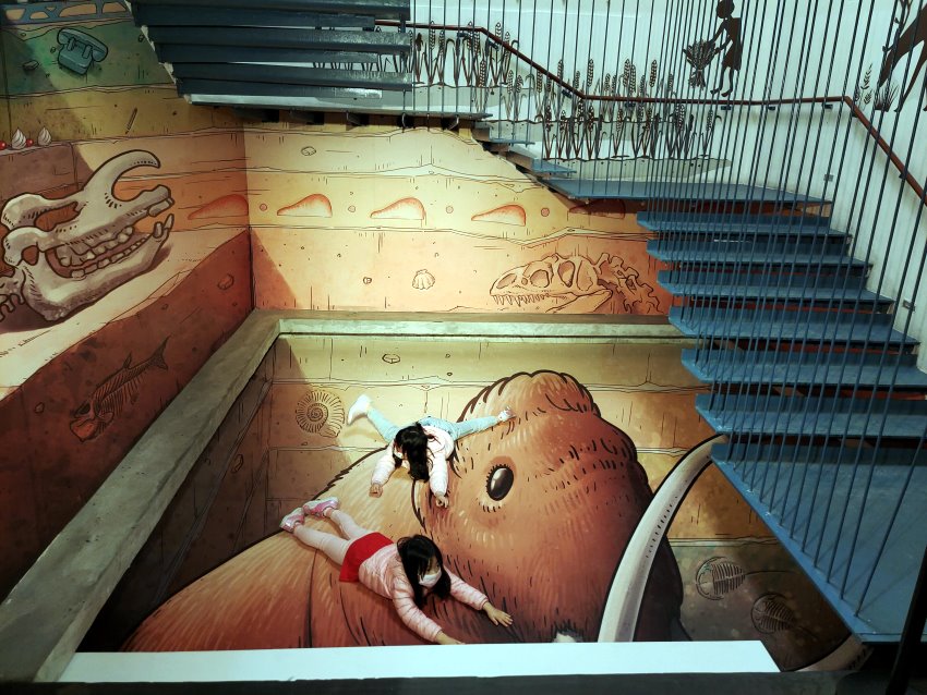 ▼通往二樓的樓梯旁還有一副超大的互動3D畫,拍起來真的是栩栩如生呢~~