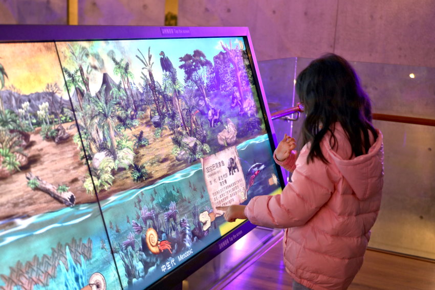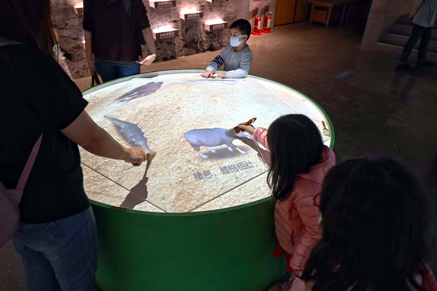 ▼現場還可以體驗挖掘化石的樂趣,用刷子在螢幕上刷一刷就會出現化石,然後就會變成活生生的動物樣貌喔!