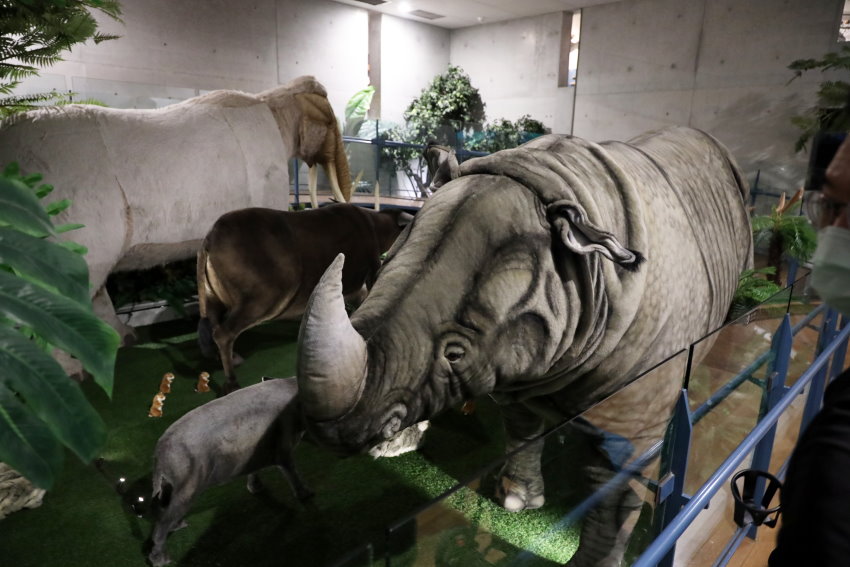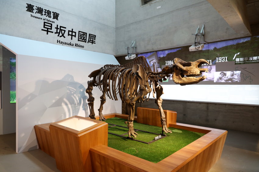 ▼這頭早坂中國犀的全身骨架化石可說是鎮館之寶,是原地層挖掘唯一的現地化石,根據第一個投入菜寮溪研究的早坂一郎教授所命名,周圍還有早坂中國犀的遷徙過程介紹~~