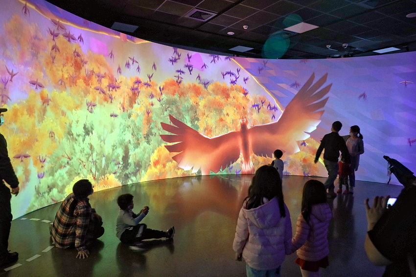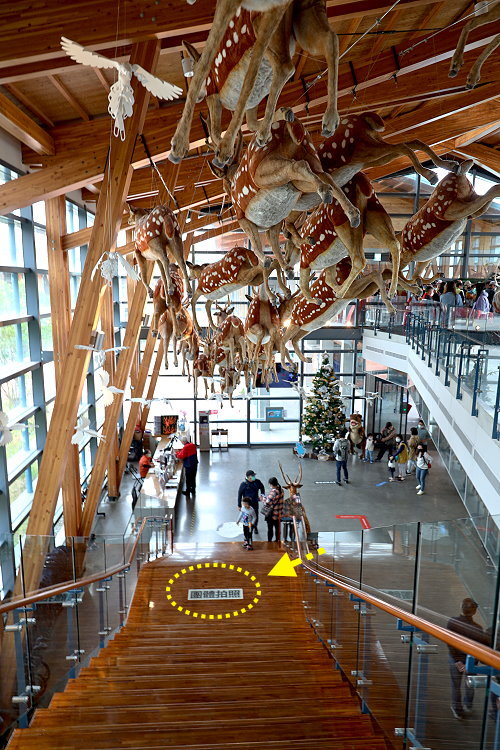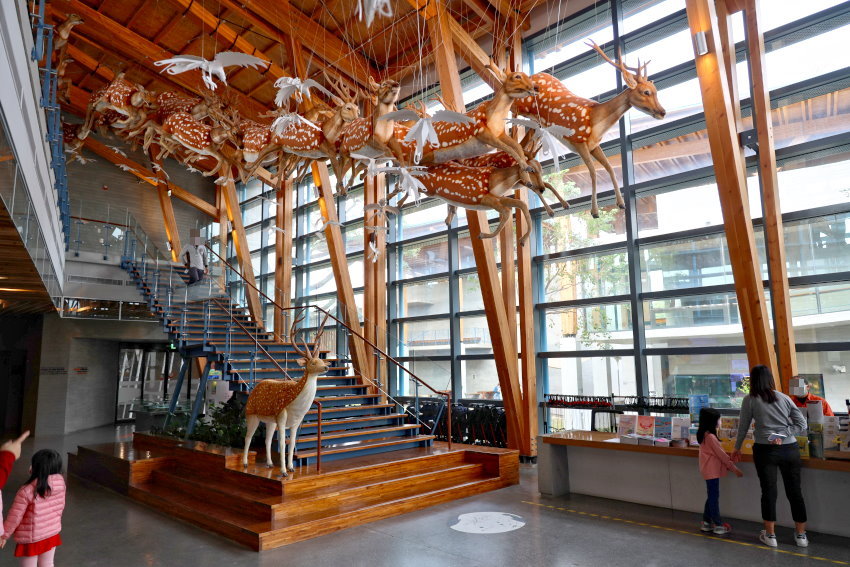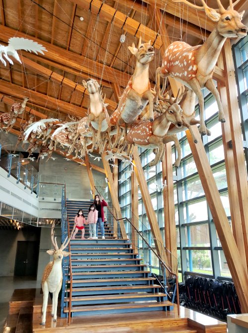 ▼第一個展區就是自然史教育館,一進來就有仿真梅花鹿群在空中飛舞,也是必拍的IG美照之一!