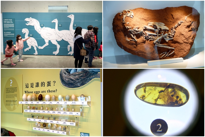 ▼這一區是龍飛鳳舞,介紹一些恐龍、鳥類的區別與化石,還有各種大小不同的蛋,讓大小朋友可以猜一下是哪種鳥類的蛋!