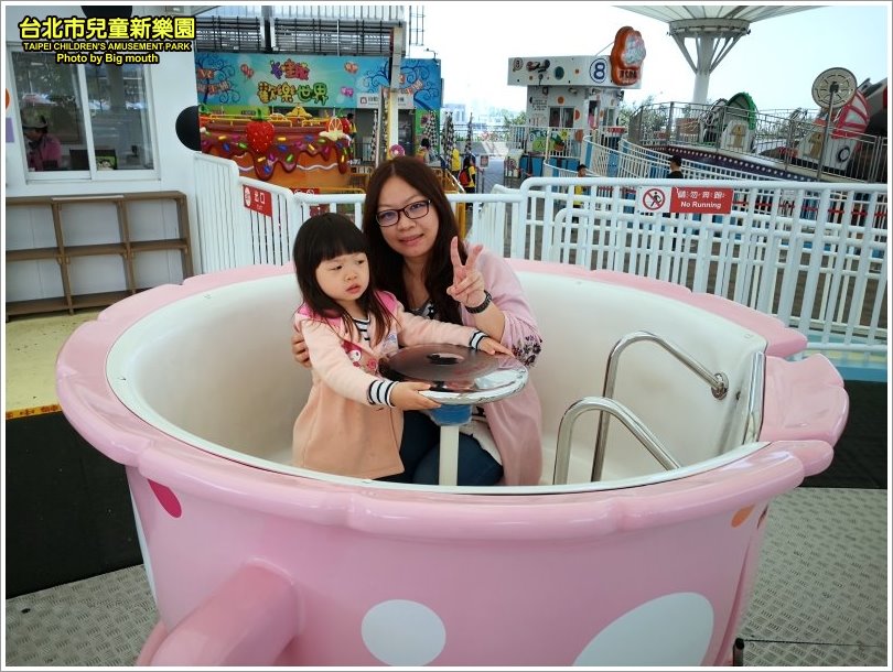 ▼7號轉轉咖啡杯(單次20元,身高未滿100公分請勿搭乘,每個座艙限乘4人),我們選了一台粉紅色的夢幻咖啡杯,坐定位、拍完照就準備出發囉!