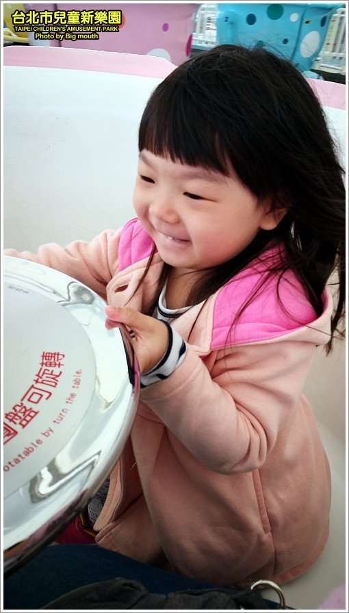 ▼咖啡杯會以公轉、自轉兩種方式旋轉,轉動圓盤的話就會旋轉的更快、更刺激,小口愛一玩成主顧,拼命轉圓盤一點也不害怕~但,馬麻怎麼覺得頭有點暈(笑)!