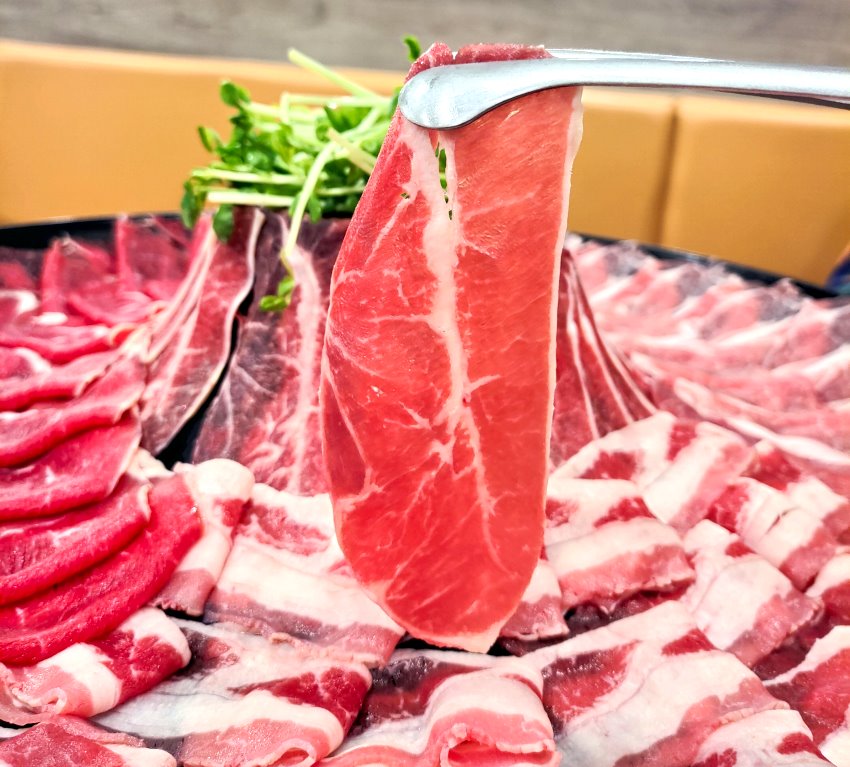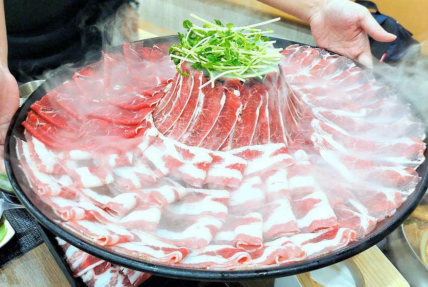 ▼我們先拿了美國牛五花、草飼低脂牛、梅花豬肉片、五花豬肉片,肉片切的比較薄一些,牛肉類建議不要涮煮太久以免影響口感!