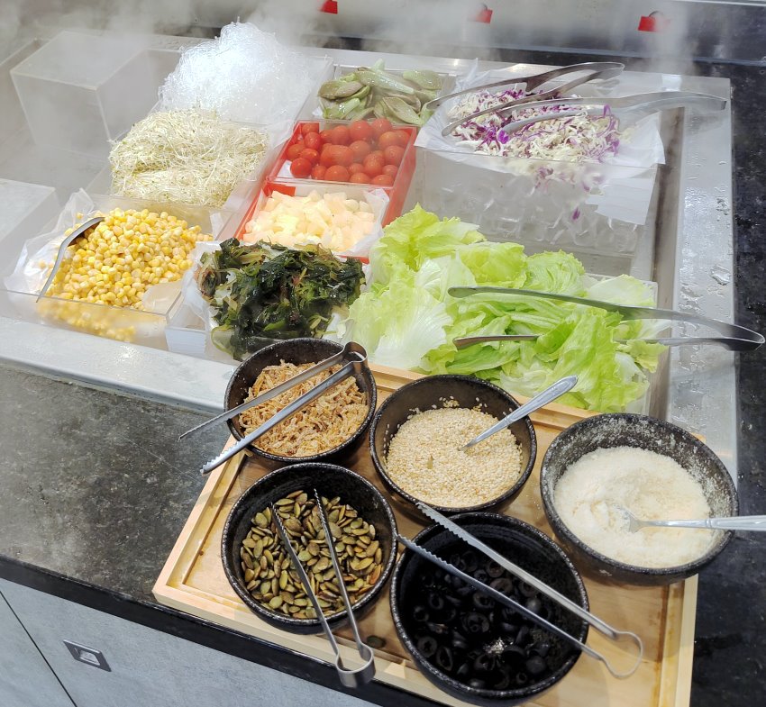 ▼我們先去拿一些蔬菜、熟食與肉品,沒多久就擺滿一整桌啦!