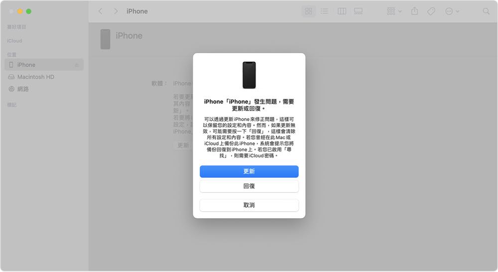 3) iPhone 連接到電腦後,按照下列步驟操作: