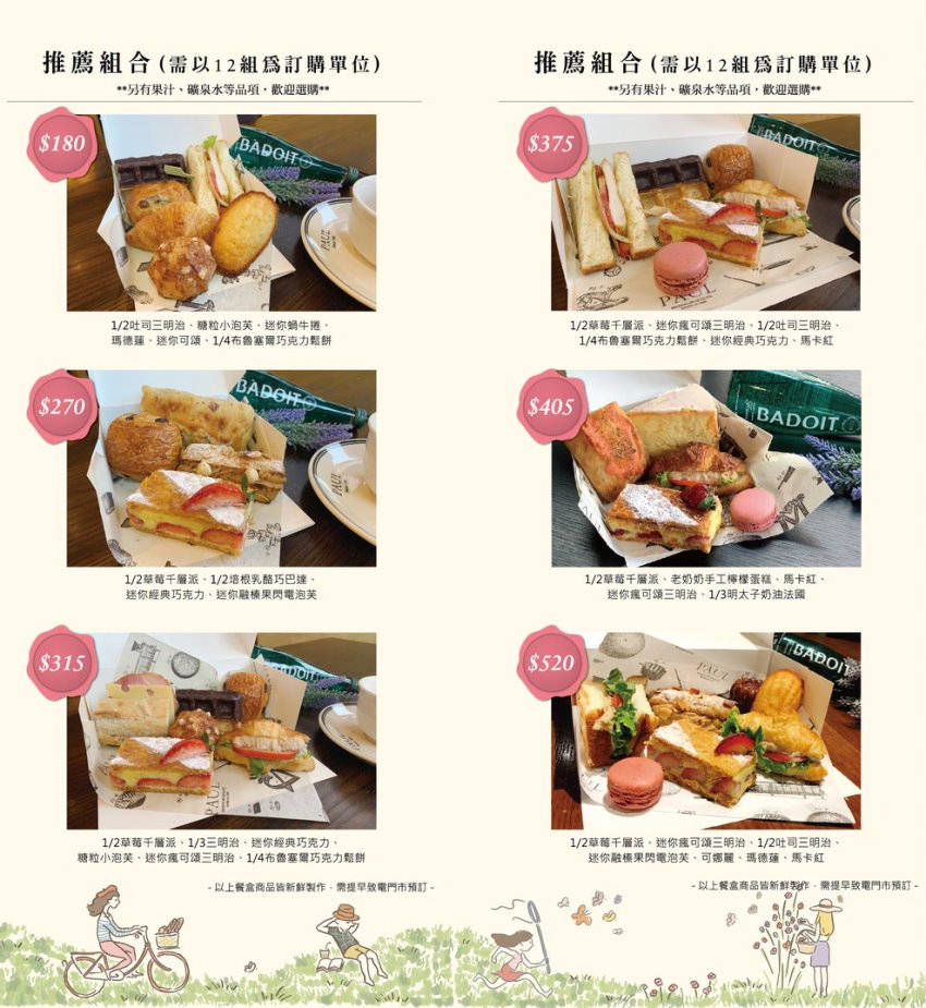 ▼客製化餐盒需7天前預訂,最低以12組為訂購單位,組合價位從180~520元都有,也可以依照個人的預算、想法來客製!