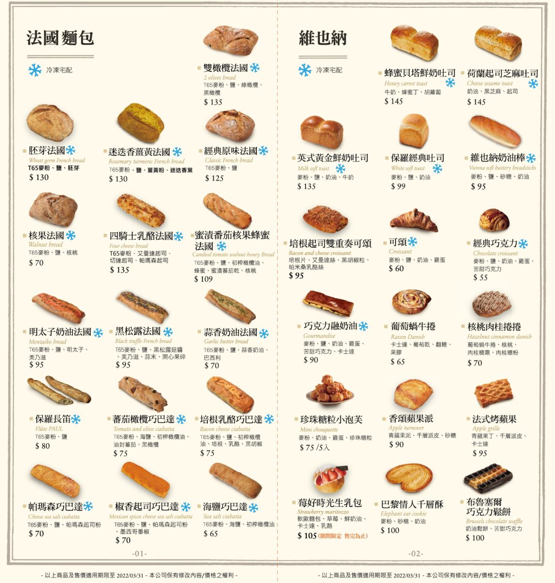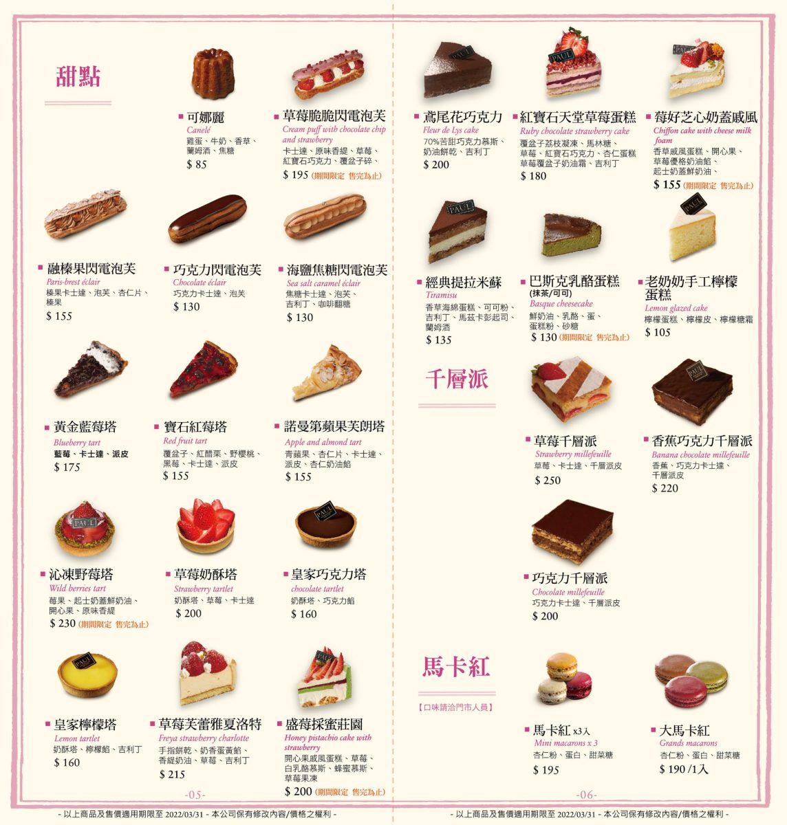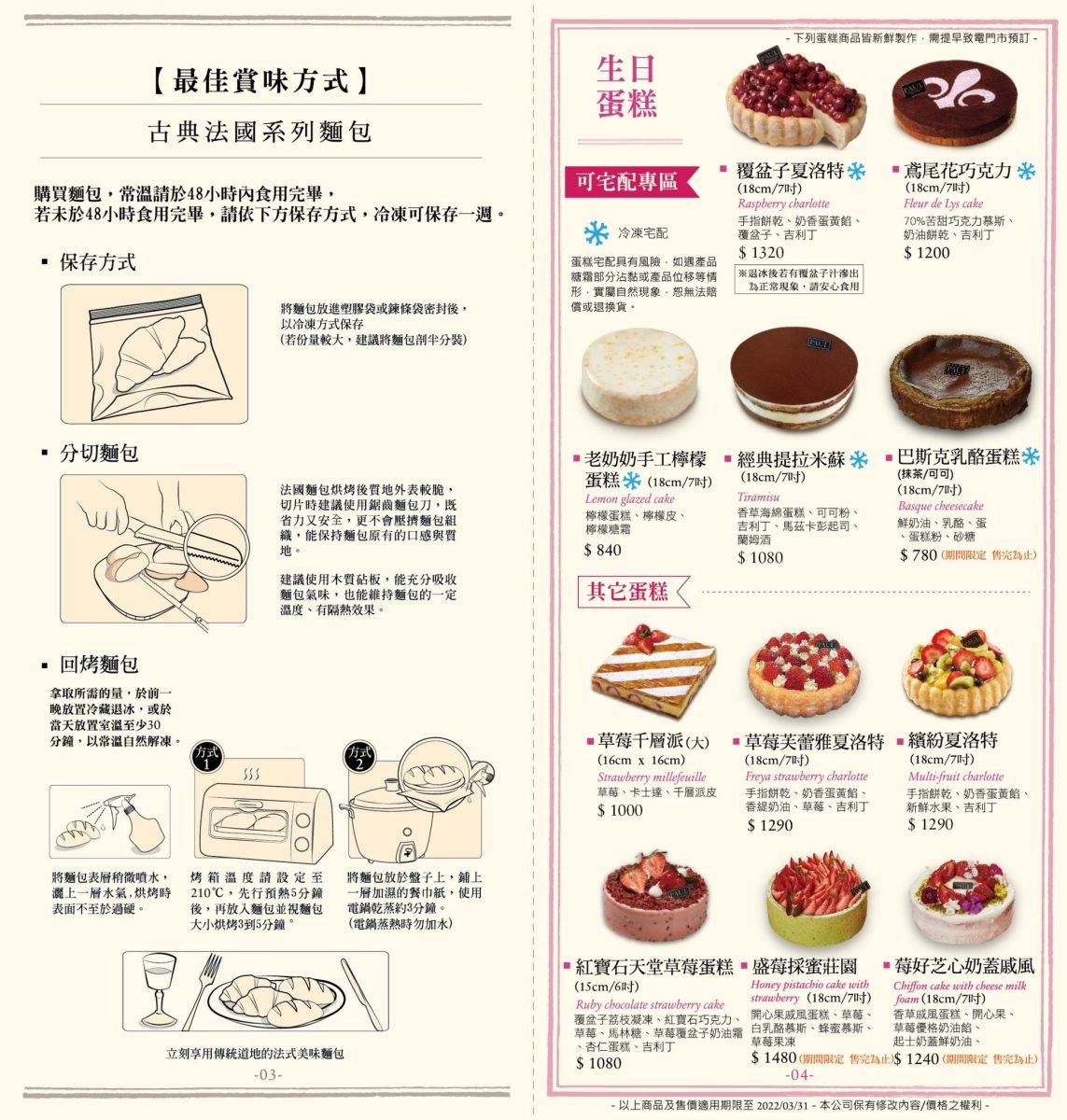 ▼以下是麵包、甜點、馬卡紅、生日蛋糕等菜單,提供給大家參考!(詳細菜單請見官網、仁愛/信義/巨城店店內菜單請點我)