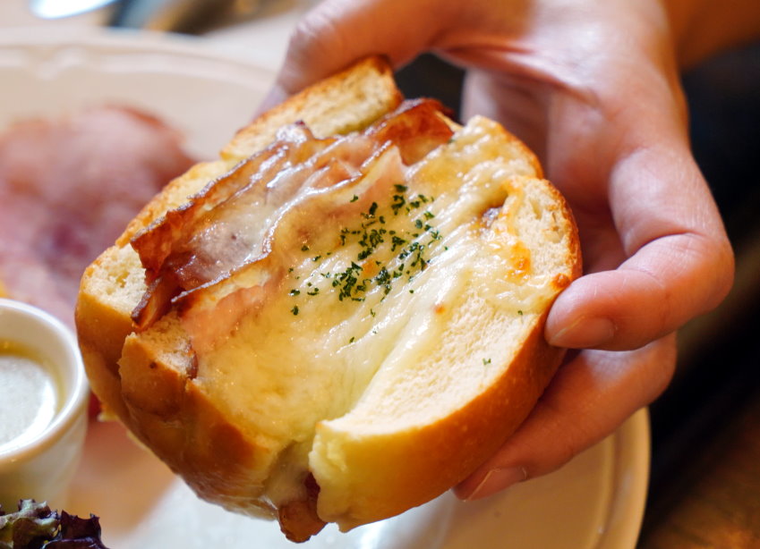 ▼鮮奶吐司裡頭夾有濃郁起司、培根下去香烤,吃起來外皮香酥、帶有迷人的奶油香氣,裡頭鬆軟有嚼感,搭配培根、起司等配料更增添鹹香口感,好吃耶!