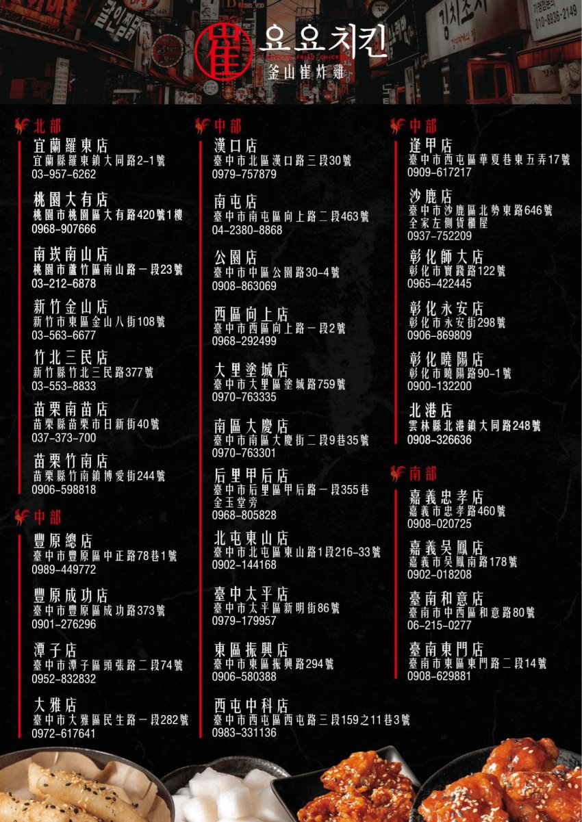 ▼釜山崔炸雞分店,全台北中南都有分店,大家可以找就近門市前往品嚐看看!