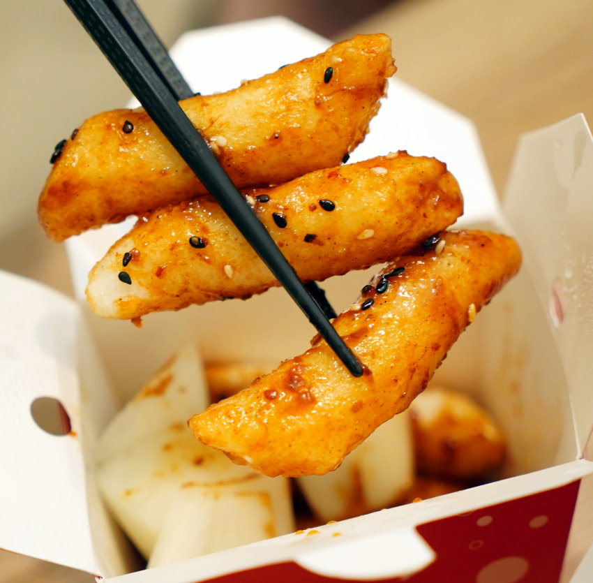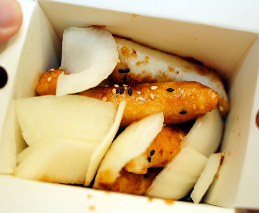 ▼韓國炸年糕,也是可以任選一種口味,我們選的是甜醬,裡頭也附有洋蔥~~