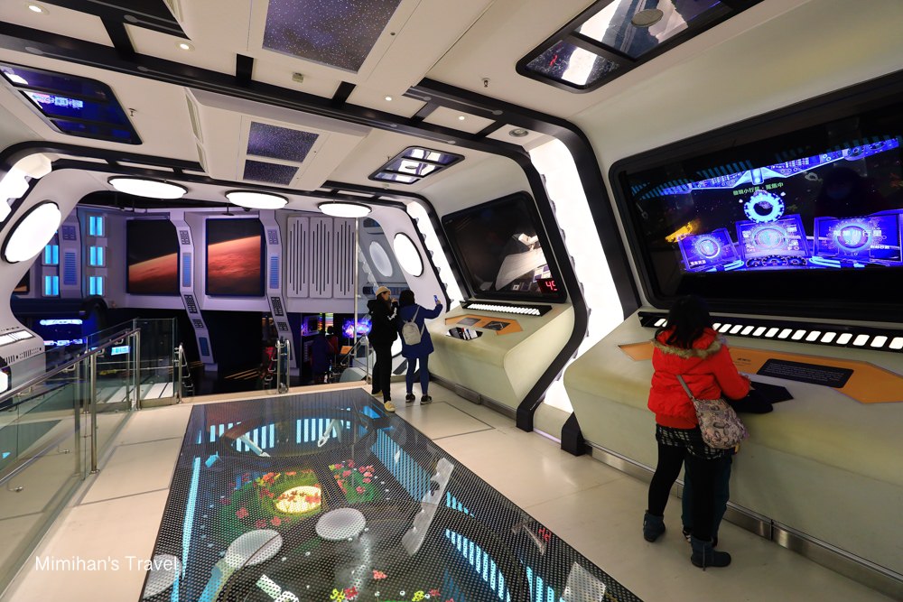 結束宇宙探險之後,接著會來到一座模擬太空城市,佈置的超有科技感。裡面會用更多互動遊戲讓孩子稍稍感受如果未來人類住在其他星球可能會遇到的情形。