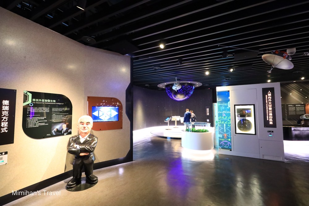 這一區我覺得是比較難的,像是計算外星生物尋獲機率的德瑞克方程式、人類向太空發出的訊息、各種望遠鏡的原理、星系分類⋯等,如果是較小的孩子可能會看不懂,需要大人或是導覽人員在旁邊解說。