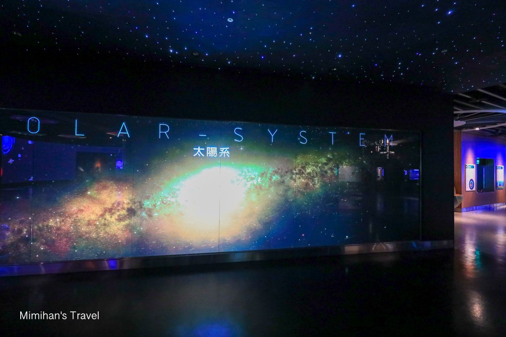 這層樓我覺得是台北天文館最美最好拍的地方,台北天文館2F裏頭用大模型呈現了太陽系八大行星、恆星的構造,還有一整片超美的銀河系、星雲牆,是台北天文館最適合FB、IG打卡照片的畫面。
