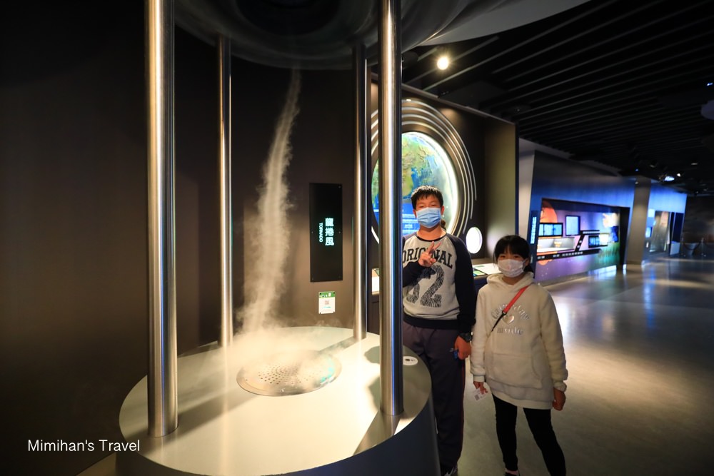 地球區中還可以看到很多地球氣候、天氣系統的互動裝置,其中這個龍捲風就很受小朋友歡迎,按下開始鈕眼前真的就看到龍捲風慢慢形成,好神奇啊!