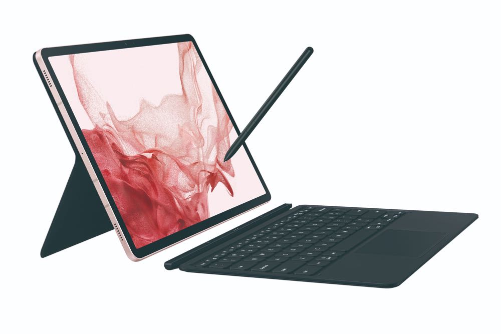 此外,透過與Windows電腦串聯,平板能變身為可觸控的第二螢幕;或藉由Samsung Dex模式搭配書本式鍵盤皮套,將平板化身筆電,隨時隨地高效辦公。Galaxy Tab S8 旗艦系列推出多元配件,Galaxy Tab S8 Ultra書本式鍵盤皮套升級配置加大面積的背光按鍵,可自訂立架角度,讓用戶隨心調整舒適觀看視角;Galaxy Tab S8+|S8書寫兩用保護殼則兼具保護性與瀏覽機能,讓每個職人打造專屬的特色工作站。