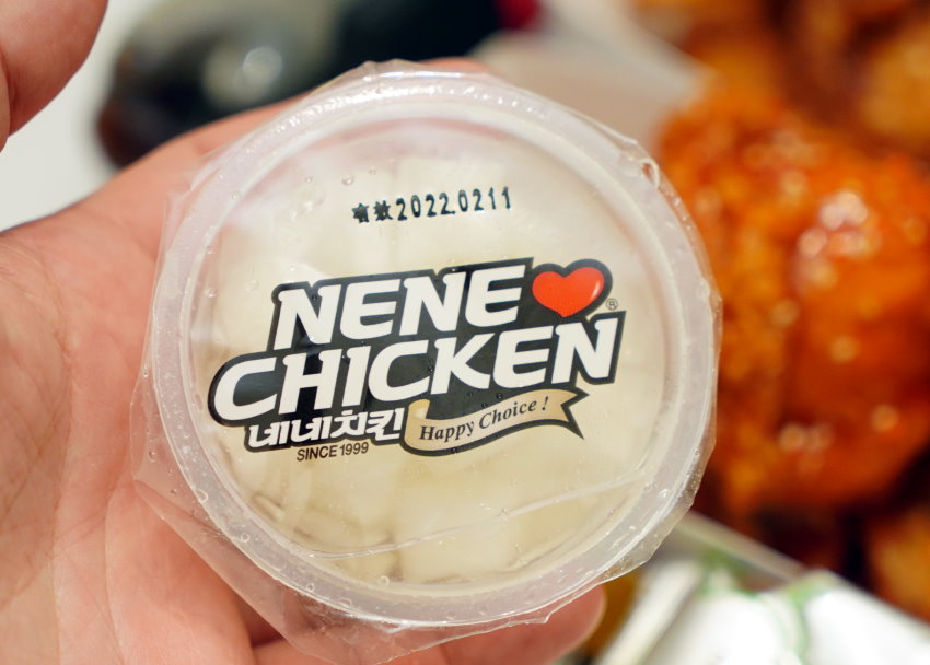 ▼NENE炸雞是四間必吃韓式炸雞的推薦名單之一,也是我們去韓國第一晚飯店訂外送吃到的炸雞,記得當初點的是醬料+起司口味,兩種口味都還不錯吃,也有可能是第一次吃正統韓式炸雞所以有驚豔到;價位約台幣532元,免外送費,還附有曲線瓶可樂、大盒醃蘿蔔,算起來CP值頗高! (下圖是我們去韓國吃到的版本)