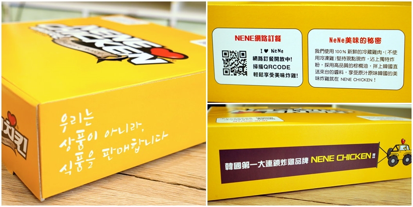 真的好想吃韓式炸雞啊啊啊~~前陣子吃了號稱韓國最大連鎖炸雞品牌bbq炸雞覺得不錯,這次換成韓國第一大連鎖炸雞品牌「NENE CHICKEN」回味一下!創立20多年的「NENE CHICKEN」不僅是韓國第一大連鎖炸雞品牌,也是由綜藝天王劉在錫代言,口味選擇多元,不管是調味炸雞、半半炸雞、半半半炸雞、辣炒年糕、拳頭飯等通通吃得到,而且3公里內就可外送(外送費70元,滿900元免運費),真的是太方便啦!NENE炸雞採用冷藏雞肉,吃起來肉質軟嫩,就連小朋友都能輕鬆享用,記得趁熱吃才能吃到麵衣酥脆的口感唷!