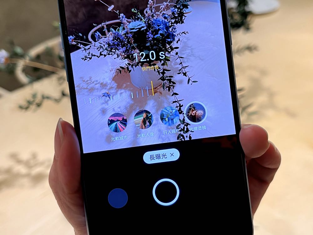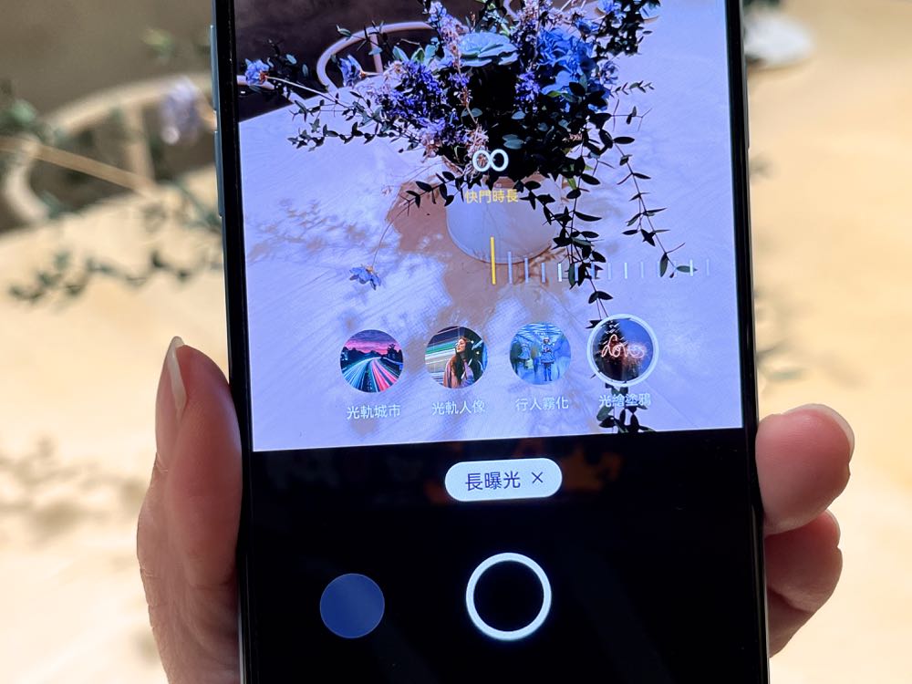 光軌模式中用戶可以手動調整曝光秒數,還能使用一根手指在快門鍵位置完成縮放和對焦,放開就會拍攝照片。