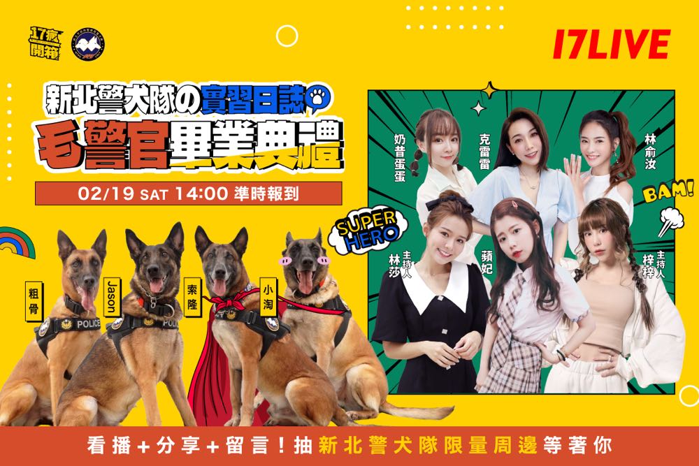 當天節目中也為觀眾準備了「新北市警犬隊NTPDK-9 Unit客製化口罩」「勇鴿雙面抱枕」「勇鴿出入平安御守」等多項新北市警察局限量周邊好禮進行抽獎,想獲得人氣限量周邊 2/19(六)下午 2 點請鎖定收看《17瘋開箱》節目帳號連結:17 瘋開箱  https://bit.ly/17unboxing