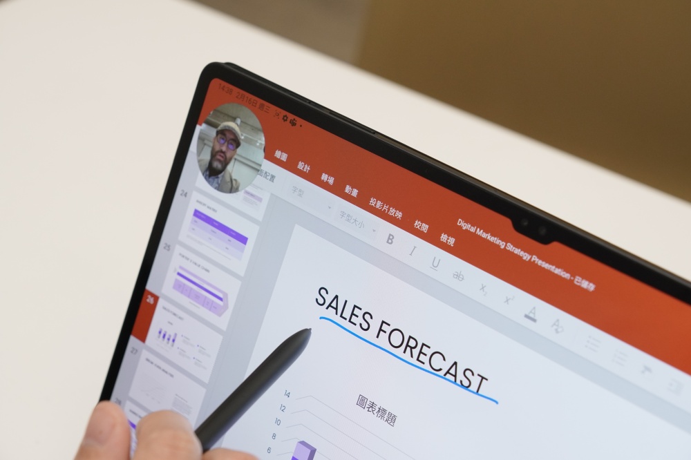 比方說多重視窗功能可以同時開啟三個不同的應用程式,比方說在做簡報的同時要查看會議筆記以及收發公司信件,都可以在大螢幕上同步完成,還可以把常用的應用程式組合設定成快捷組合,下次只要一鍵點選就能立即展開。
