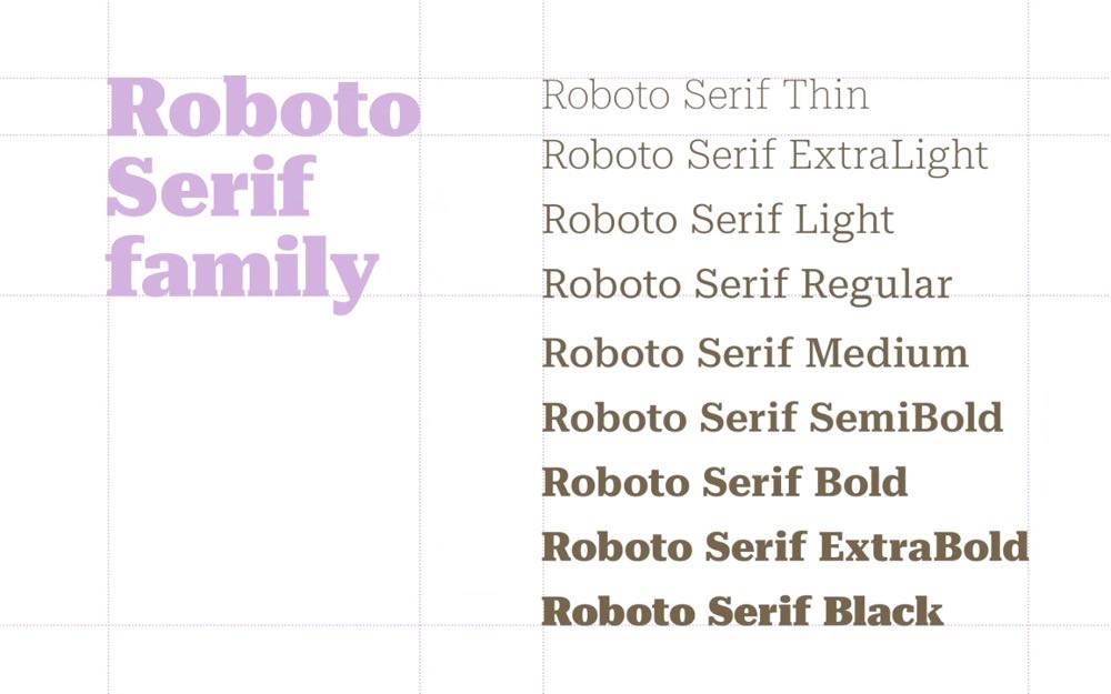Roboto Serif 將每個字母都從頭開始重新繪製,再創造出一種以 Roboto 為延伸的原創設計字體。Roboto Serif 還能調整粗細、寬度等尺寸,不管怎麼調整都能相當協調的讓視覺上感到舒服。