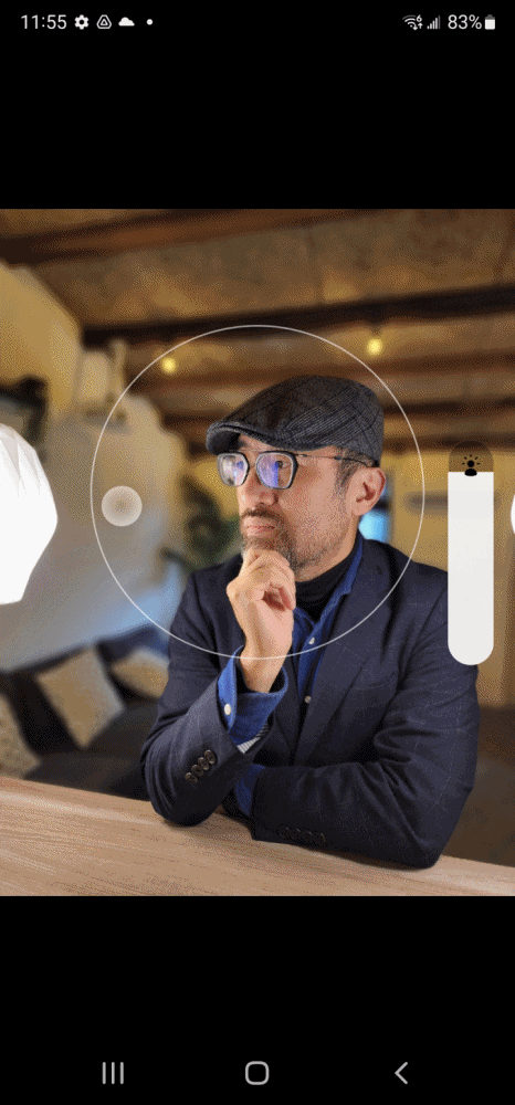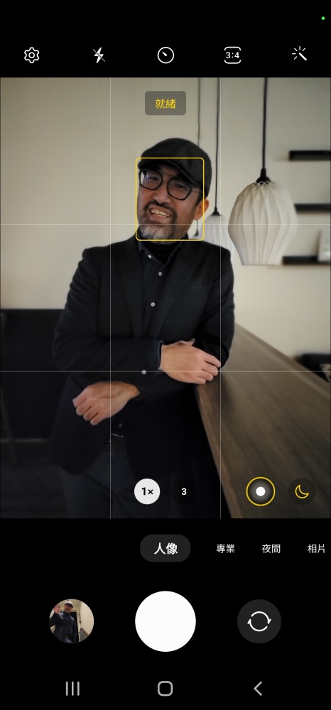 比方說這是使用人像模式在低光源處的拍攝畫面,可以看到相機介面右下角的場景辨識功能自動辨識出低光源模式拍攝。