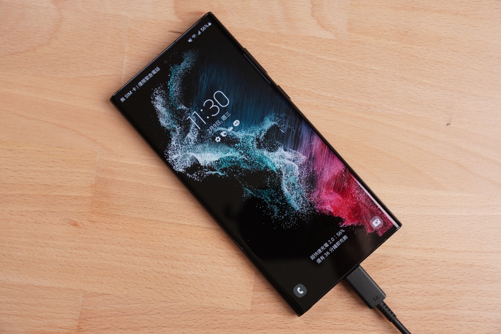充電速度方面,Galaxy S22 Ultra 支援最高 45W 超快速充電 2.0 技術,從 1% 充電到 50% 大概只要 23 分鐘左右,不過從電量 80% 之後為了保護電池,手機會自動調節充電速度,充飽到 100% 大約需要 60 分鐘。