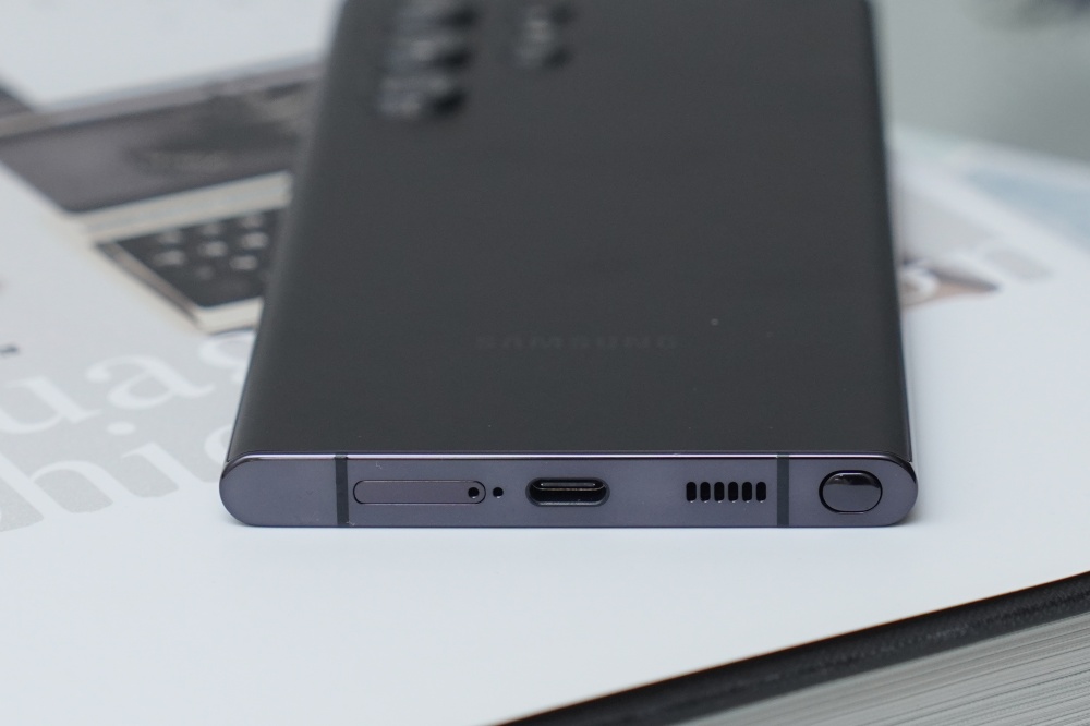 以 Galaxy S22 Ultra 為例,機身採用左右對稱設計,可以看到邊框的圓弧曲線左右是一致的,底部的連接埠、揚聲器、S Pen 筆槽等配置也都準確地落在中線上,看起來非常順眼舒服,前一代強調的主鏡頭飾板在這一代調整為和機身一致的配色,Galaxy S22 Ultra 甚至沒有主鏡頭飾板,而是直接讓主鏡頭和機身結合在一起,落實「極簡」的概念。